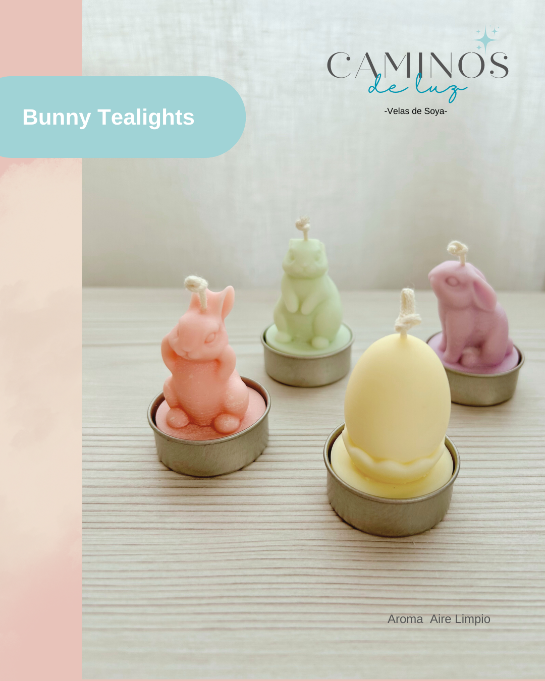 Juego de 4 velas de cera de soya con motivos de Pascua.