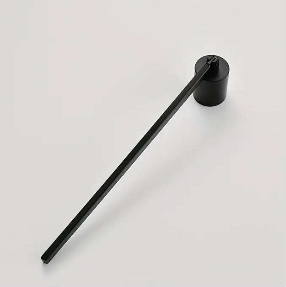 Campana para apagar velas sin generar humo ni residuos sobre la vela. De metal, color negro, 17cms de largo.